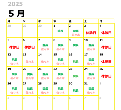 ゴールデンウイークは5月3日から6日まで休診となります。